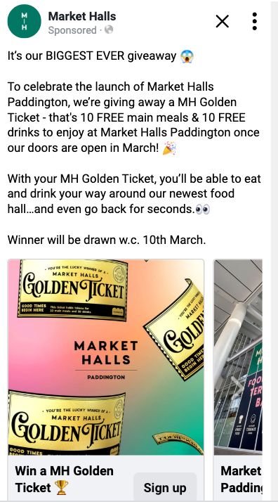 To further drive local engagement, we provided an additional golden ticket to the largest nearby offices to host their own internal competition, helping to increase awareness among local workers. We also ran our own separate competition, offering a golden ticket to individuals who signed up to our Paddington email database. This was promoted across social channels and through a pop-up on our website.”