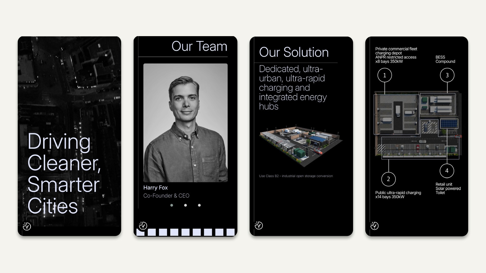 We started by grounding ourselves in the world Hubber operates in: urban infrastructure, energy networks, and the EV landscape. The brand needed to feel technical and human in equal measure, credible to property developers and city planners without being alienating to everyday users.